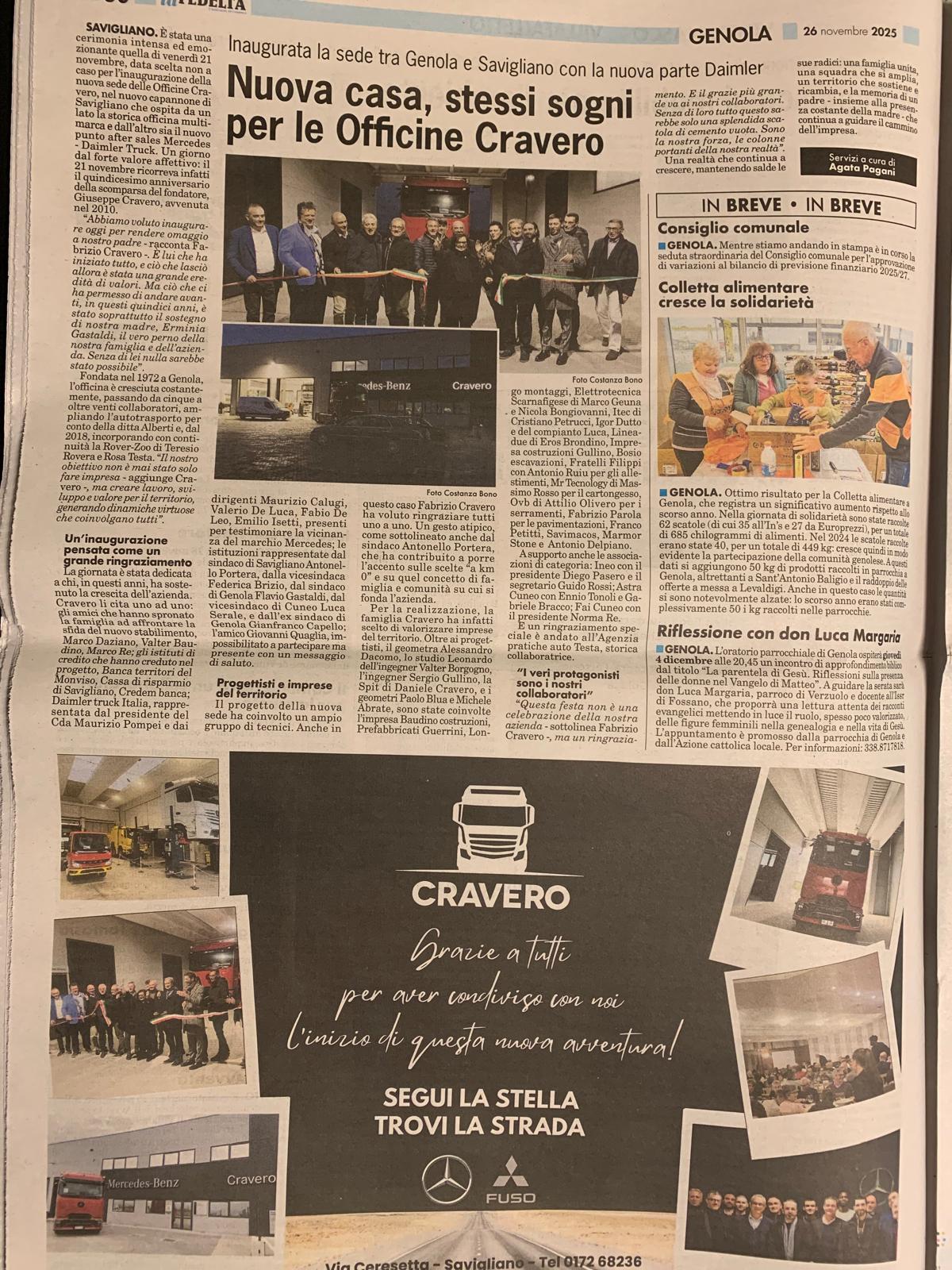 E’ stata una cerimonia intensa ed emozionante quella di Venerdì 21 novembre, data scelta non a caso per la nostra inaugurazione ufficiale, nel nuovo capannone di Savigliano che ospita da un lato la storica officina multimarca e dall’altro il nuovo punto after sales Mercedes – Daimler Truck.